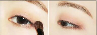 輕微將眼影刷清理,然後粘取淺棕色眼影,將其涂在上眼皮位置,並進行暈染。
