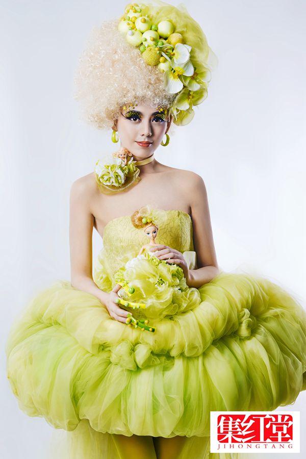 绿色精灵造型,以“甜腻嗲”为特色的“蜜糖体”是当下网上最流行时尚。此造型最大的特点是:含糖量相当高!不论是甜蜜感十足的假睫毛还是充满幸福感的蛋糕裙,或是那果色的指甲油,还有颈上带的绿色小芭比等等都起着增加糖份的作用!粉嫩糖果妆是“蜜糖体”的标志性妆容。化妆师大胆的运用甜蜜的果绿色以及鲜艳的水果色,使造型清纯、甜美、时尚而又充満了童趣。